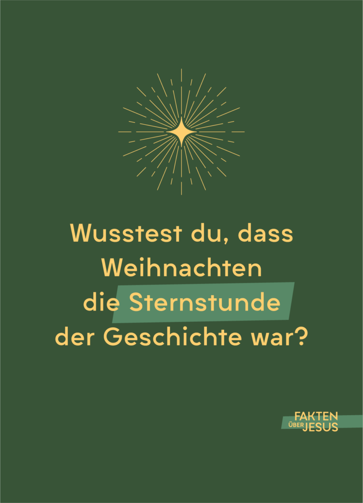 Hast du Fragen zum Thema? Wertvolle Antworten findest du im Evangelium nach Lukas. Der Arzt Lukas hat Augenzeugenberichte gesammelt und daraus sein Buch über Jesus geschrieben – von Weihnachten bis Ostern und darüber hinaus. Bestell es dir hier gern kostenfrei: